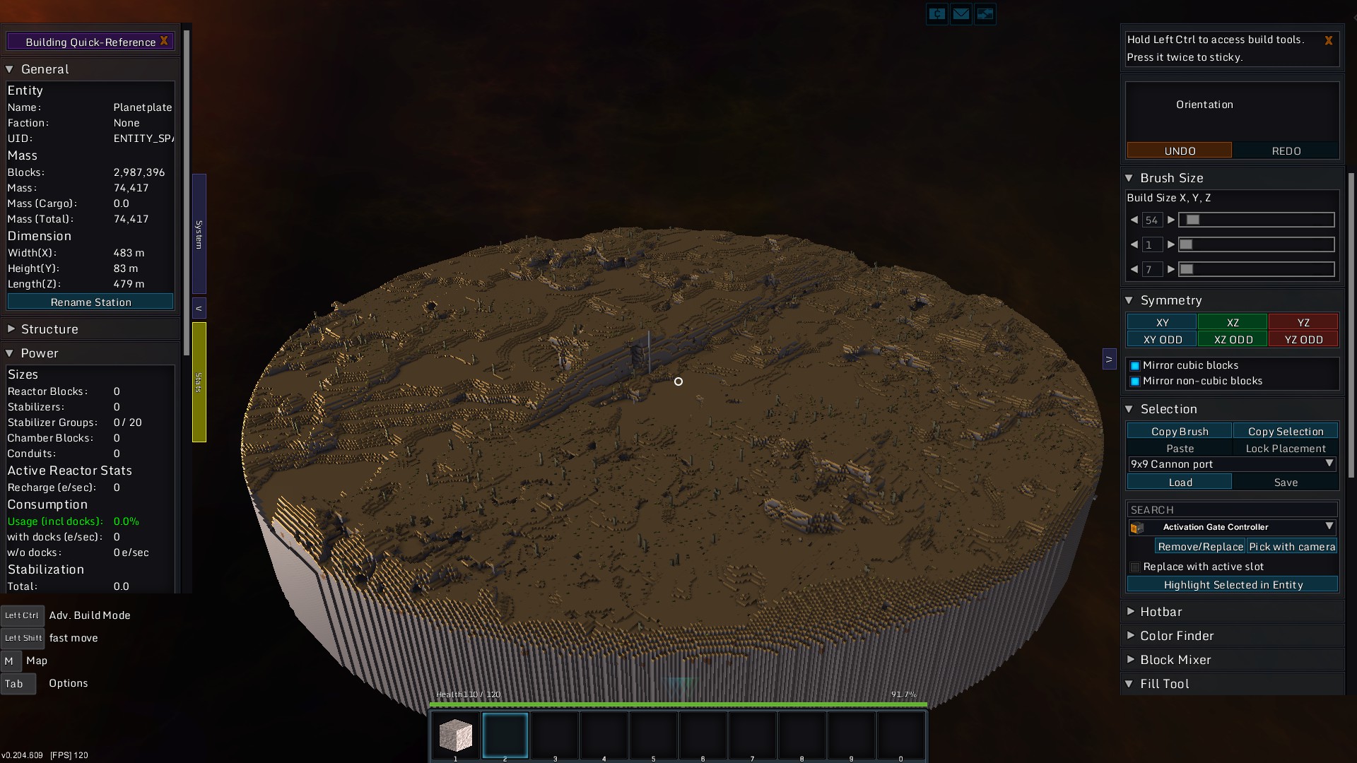 Does what the title says more or less, the interior of the planet is hollow so you don't need to use insane quantities of rock. The planet has a tiny reactor with a mass chamber to mimic gravity. The planet is somewhat taller than the OG planets to give more space to park ships/systems. Let me know if there's a problem with the station or the structure.