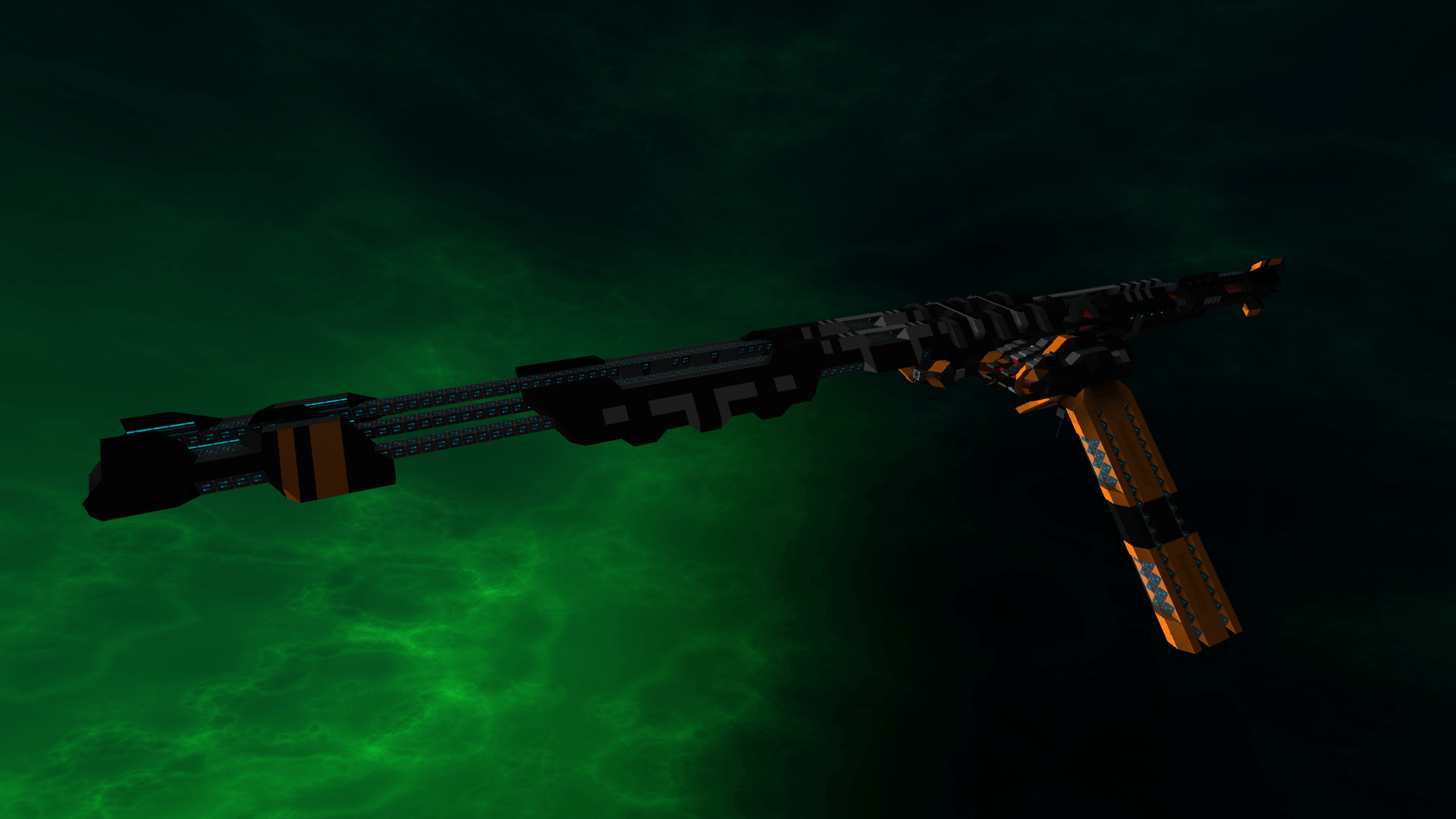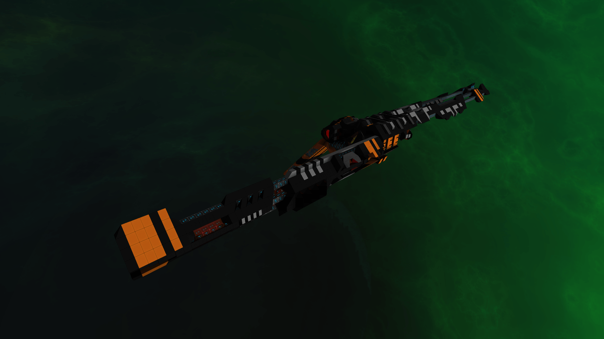 New and improved. The original was over 200m long, she now sits at 140m. Necessary in order for her to be entered into the fleet build competition. She can still do it all while cloaked and maintain stable power, so nothing has changed there. The missile system has been slightly reduced in size, but a couple of point defense turrets have been added.