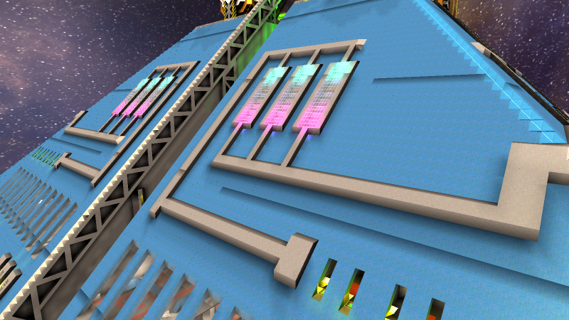 Entrance. While the hanger area is entirely exposed to space it is impractical to try flying in anywhere besides the entryway