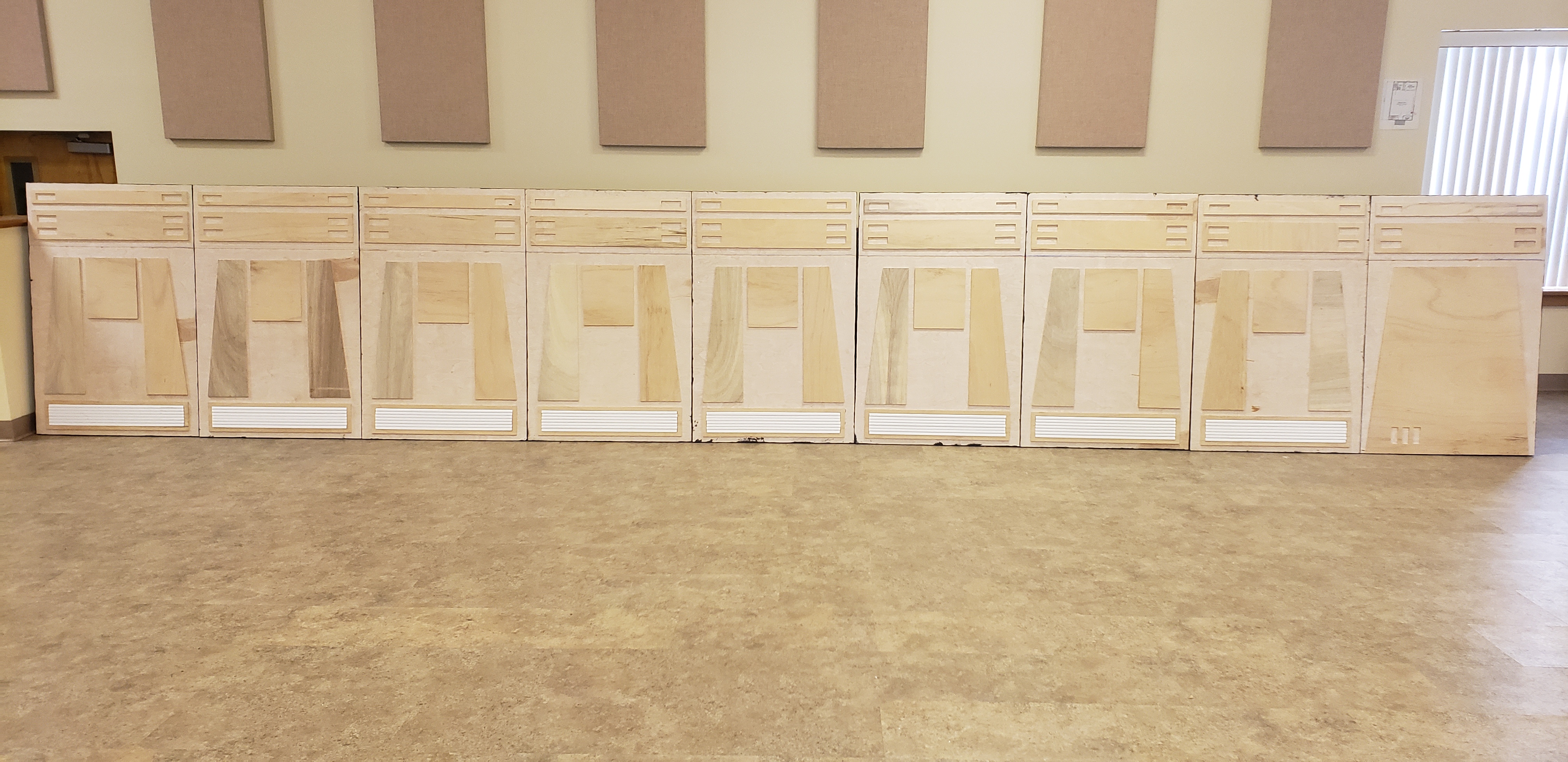 Below is a little montage of building the base, cutting out the piecies, lining them up and glueing, then painting, and the finished pile