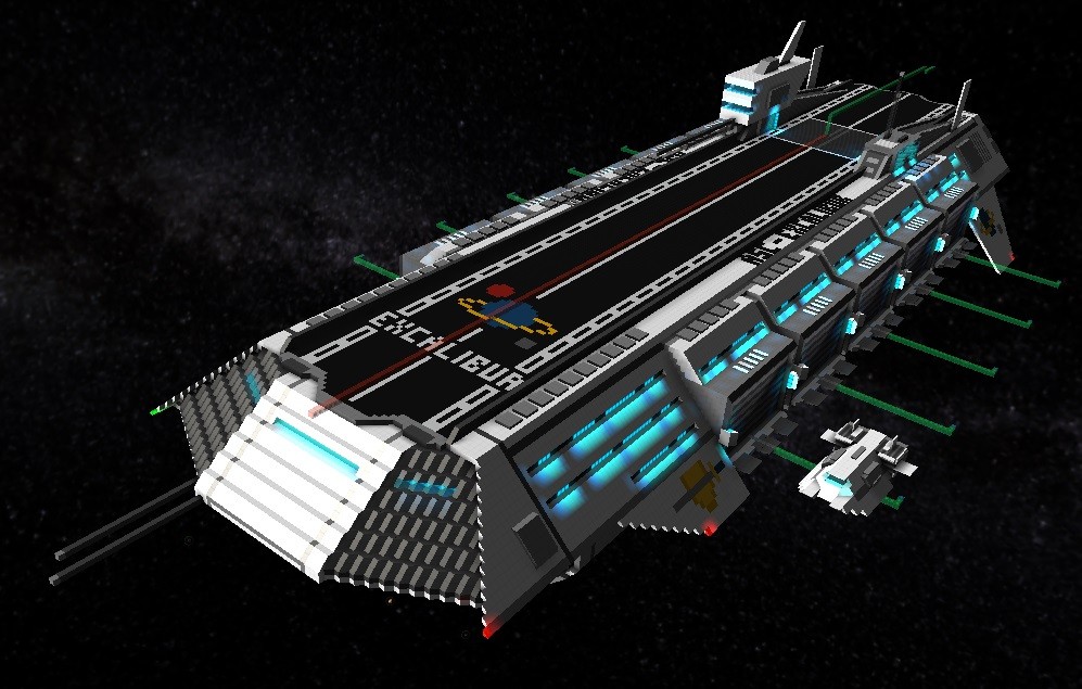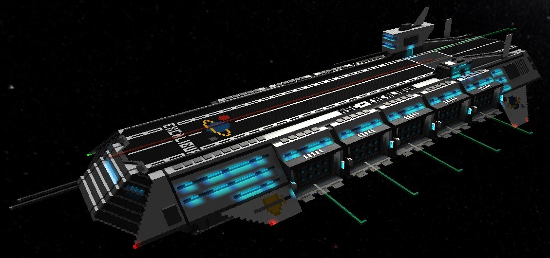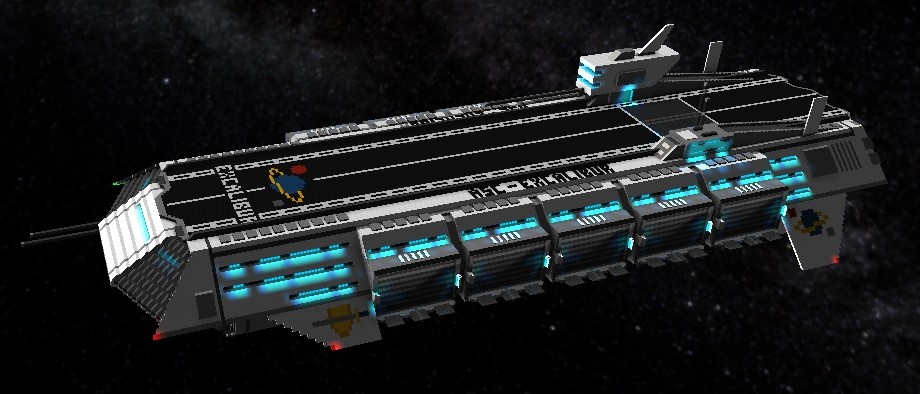 This is incredible! Its so amazing! Not only does it look great, but it seems STRONG :PAfter years without building anything even remotely resembling a capital ship, I've decided to create my first true air/spacecraft carrier. Unlike my previous craft with fighter bays, this ship will have 10 side-mounted bays and a central hangar that extends about 150 meters, front to back under the flight deck. Each bay will able to accommodate manned fighters and shuttles in a more realistic size range think (F-14D or A-10 Warthog). Each bay can also hold 4 of my former generation fighters (the little 11 meter ones on page #1 of this thread) or a squad of 16 powered armors for when Schine finally releases the fauna update.