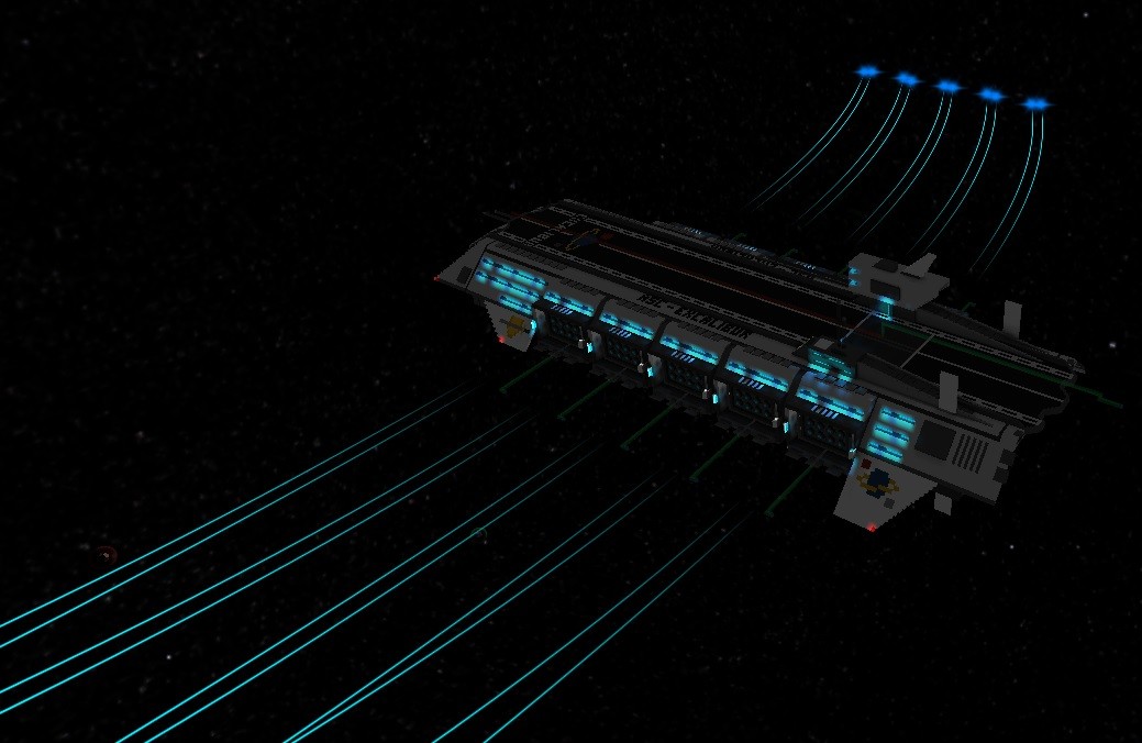 Just like my 100x automatic torpedo launcher, this is gonna be a rails/logic nightmare but I know I can pull it off. Also, I underestimated the size of this craft and found that I can fit my old jump shuttles in the bays.