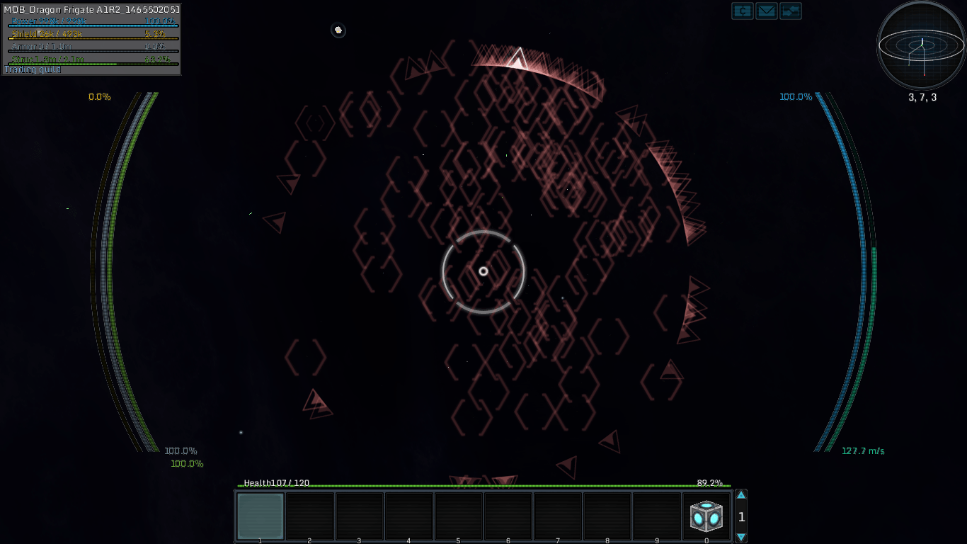 Madman is working inside this heavy vessel, docking our drone Headhunters and fixing logic. Finding a fault in the logic, he proceeds to EJECT ONE INSIDE THE SEALED HANGAR BAY. When I come back, I get this greeting: Hey, the cruiser's 1500m from base and moving away rapidly. This cruiser is still a hull, mind you, no systems installed minus hangar logic.